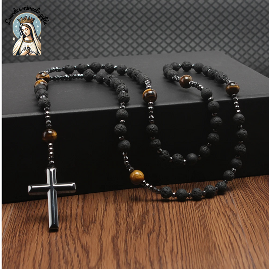 Lava Stone Tiger Eye Cross Necklace
