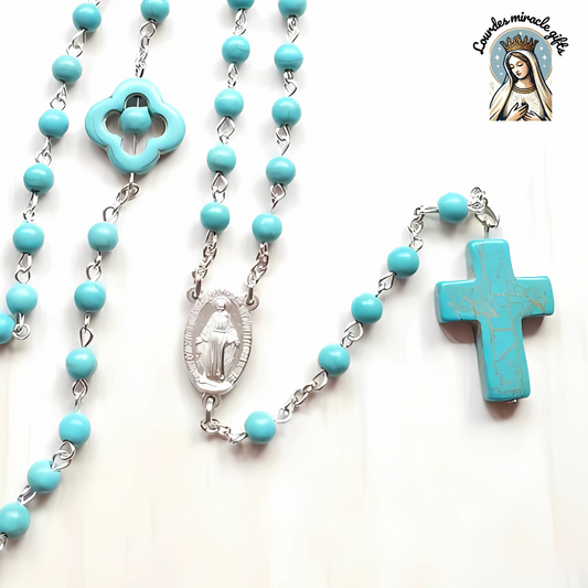 Blue Stone Cross Pendant Rosary