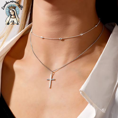 Divine Layers™ – Romantic Cross & Beaded Chain Necklace
