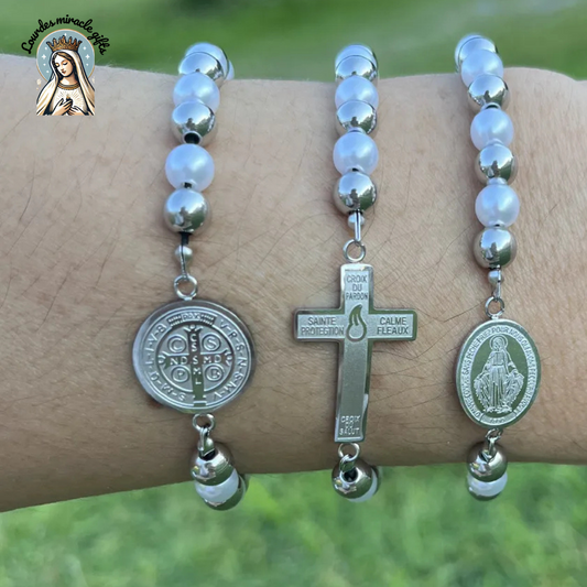 Stainless Steel Faith Bracelet – Saint Benedict, Miraculous Medal, Cross